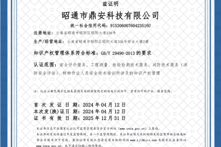 2003年11月10日,昭通市鼎安科技有限公司成立,初始主要從事第三方安全工程技術服務,經多年運營,發展為多專業綜合科技平臺,為社會提供多種專業技術服務工作。 現公司注冊資金為1200萬元,公司法定代表人:毛衛旭。公司主要業務:安全評價、安全標準化評審、安全工程技術服務;環境監測、職業衛生檢測、檢驗;法律訴訟及非訴訟服務;司法鑒定、固定資產投資項目節能服務;工程咨詢;工程測量測繪;安全教育培訓等。是安全生產服務、安全教育培訓機構,也是環境監測和職業衛生服務機構,同時也是綜合的檢測檢驗、綜合科技平臺服務機構。多年來為公、檢、法、司、軍、警、海關、仲裁、安監、工礦商貿企業、社會團體及個人提供多專業技術服務。